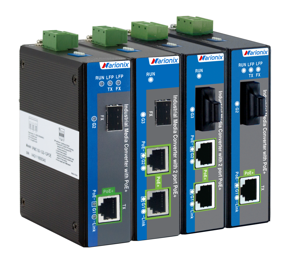 Full Gigabit Ethernet медиаконвертер, 1 x 1G RJ45 PoE, 1 x 1G SFP, питание 12~48VDC, монтаж на DIN-рейку