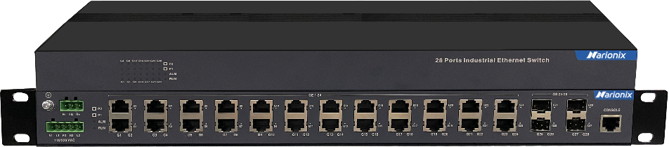 Управляемый промышленный Full Gigabit Ethernet коммутатор 2 уровня для энергетики IEC 61850-3, 24 x 1G RJ45, 4 x 1G SFP, питание 2 x 18-72VDC, монтаж в стойку 19″