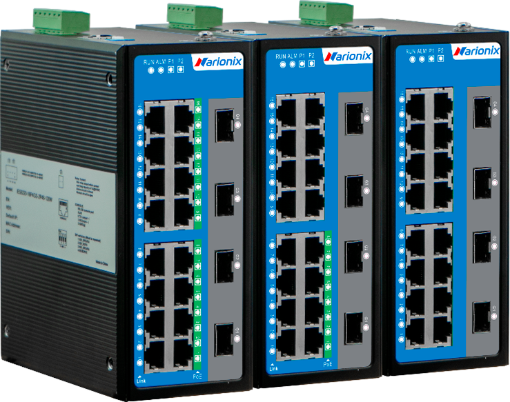 Неуправляемый промышленный Gigabit Ethernet коммутатор, 16 x 100M RJ45, 4 x 1G SFP, питание 2 x 12~48VDC, монтаж на DIN-рейку