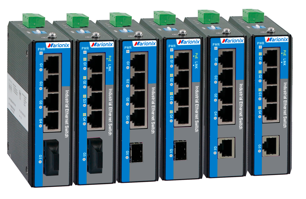 Неуправляемый промышленный Full Gigabit Ethernet коммутатор, 4 x 1G RJ45 PoE, 1 x 1G оптика, питание 48VDC, монтаж на DIN-рейку