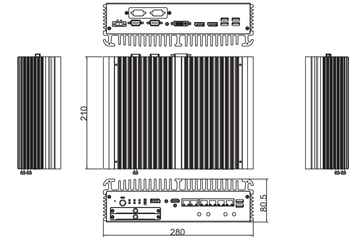 Компактный безвентиляторный компьютер eBOX671-521-FL-DC-4PoE, LGA1151, поддержка процессора 8-го поколения Intel® Core™ i7/i5/i3 и Celeron®, чипсет Intel® Q370, 1 х DVI-I, 1 х HDMI, 2 x 2.5" HDD, 4 х PoE, 2 х GbE, 4 x USB 3.1 Gen2, 2 x USB 3.1 Gen1, 2 x RS-232/422/485, 2 x Full-size PCI Express Mini Card (USB + PCIel), 2 x SIM, 1 x внутреннийl MXM3.1 type A, 24 В DC