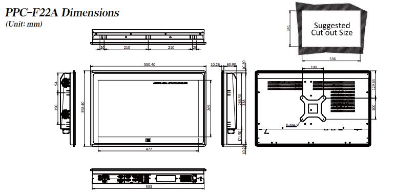 Панельный компьютер PPC-F22AD-H81i/PC, дисплей 21.5”, 250 кд/м², 1920 x 1080 FHD, чипсет Intel H81, W/O CPU (TDP Max. 65Вт) и RAM, поддержка iRIS-2400, черный цвет, PSU ACE-4520C, проекционно-ёмкостный сенсорный экран